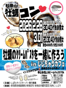 赤穂牡蠣をふんだんに使って、時短で作れるクリームパスタレシピを修得しつつ出会いの1つの場になっちゃう一石二鳥のイベント!